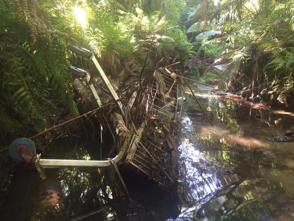 The impacts of this system are also visible in other ways. Abandoned supermarket trolleys have become a common sight in local streets and waterways. In 2022, Ethan and his kids collected more than 30 trolleys in just six weeks, many pulled directly from a nearby stream. Despite efforts to raise the issue, responses from supermarkets and council have been slow. Eventually, the recovered trolleys were returned for a donation, which was then used to purchase fruit trees for the local marae, turning a problem into an opportunity for regeneration.